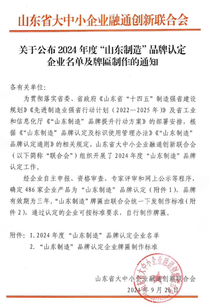 喜報!棗莊新遠(yuǎn)大裝備制造有限公司榮獲“山東制造”品牌認(rèn)定